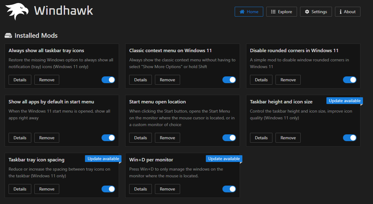 WindHawk meg egyedi Tweakeket lehet beállitani meg amire a Microsoft nem hajlandó, pl hogy mind2 monitoron a start ban legyen ott az idö xD