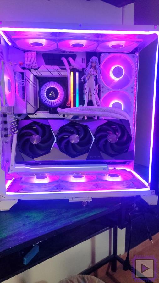 | Processor: | AMD Ryzen 7 9800X3D Arctic Liquid Freezer 3 with push and pull artctic p12 max and 10 Asus Tuf TR120 white |